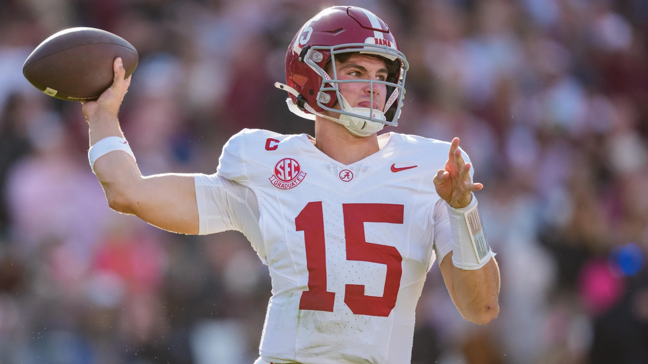 Tennessee’s Chris Brazzell II is 6’5″, with the vertical speed to take the top off of any defense. Against the Georgia Bulldogs in September, the junior prospect caught six passes for 177 yards and three touchdowns. He currently ranks among the nation’s Top 12 in receiving yardage (808) and touchdown receptions (eight).