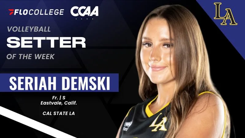 LOS ANGELES — Cal State LA’s Seriah Demski has been named the FloCollege/Califiornia Collegiate Athletic Association Setter of the Week for the week of Nov. 3-9, the conference announced on Tuesday.