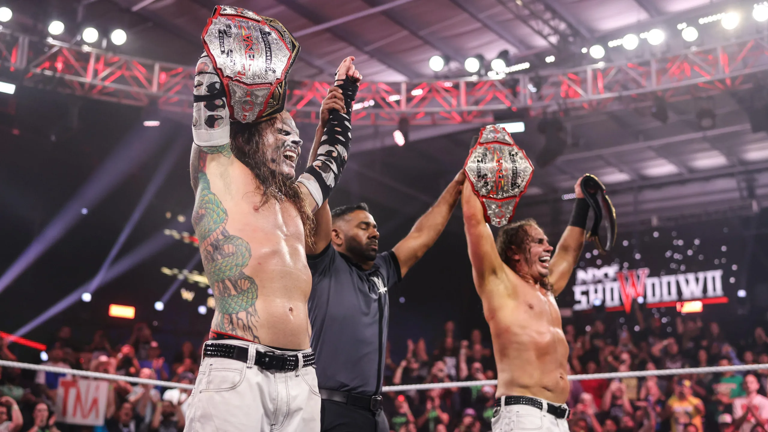 One of the matches on that show was a title vs. title match with the Hardy Boyz putting the TNA World Tag Team Championships on the line and DarkState doing the same with the NXT tag titles.