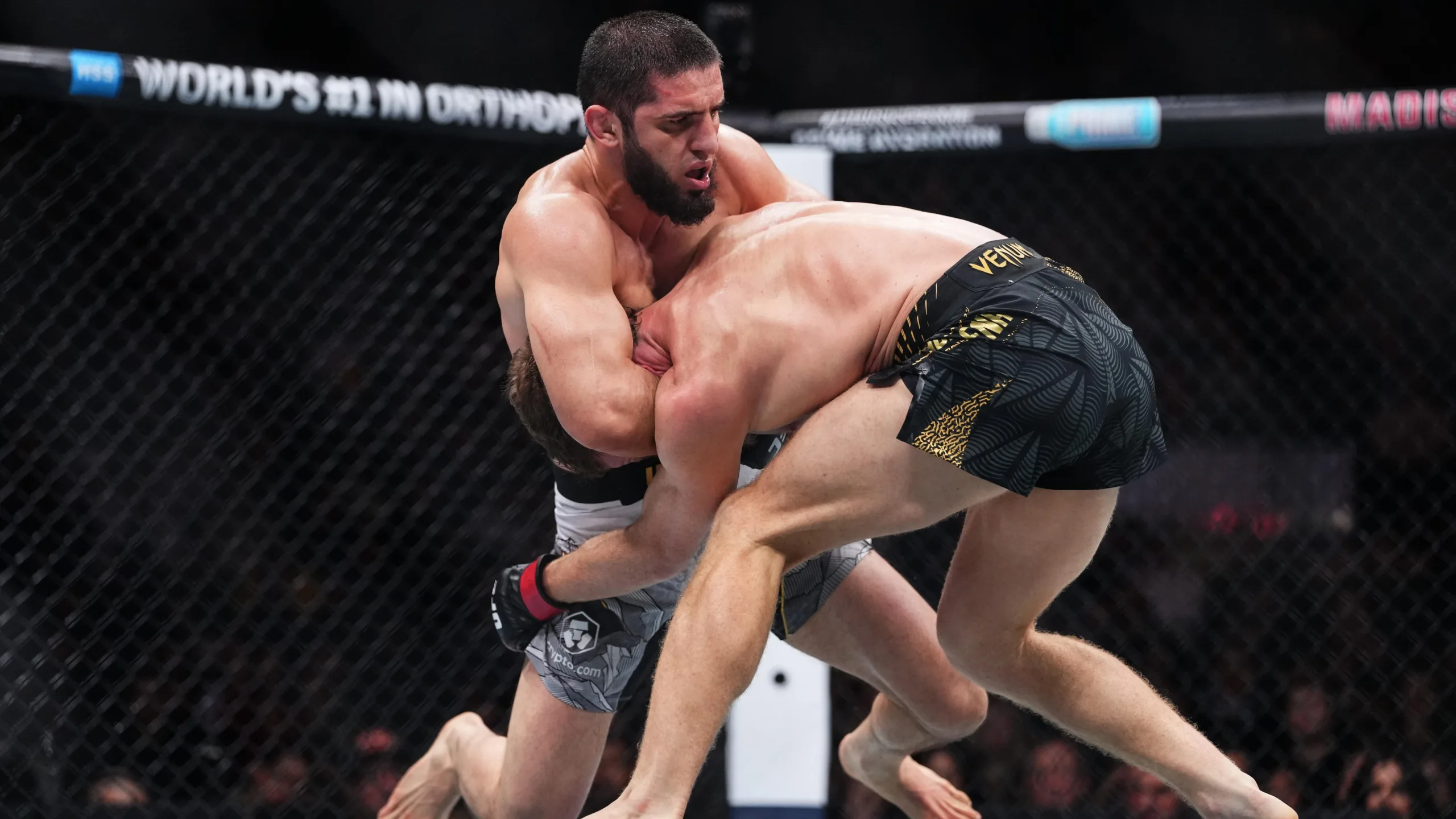 It didn’t take long for the fight to start going Makhachev’s way. After a brief period of striking he was able to lock in a takedown and go to work on smothering the defending champion.Â