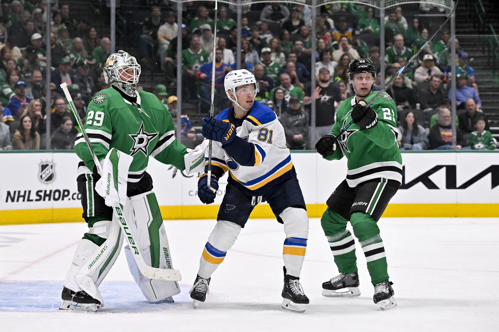 one by former Blue Radek Faksa late in the second period.